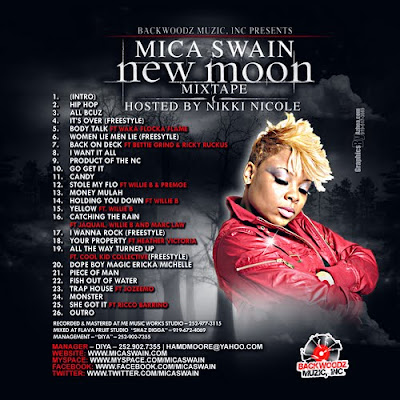 Mica Swain is one to watch out for coming out of NC (Roper, NC to be exact). Her single ‘Body Talk’ featuring Waka Flocka Flame has the strip clubs in the Carolinas going HAM, the mixtape release party for New Moon was last Friday in Rocky Mount, NC and now the official project is out.