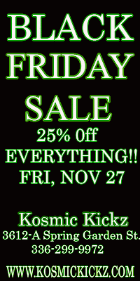 Don’t miss Kosmic Kickz Rare & Exclusive Sneakers upcoming Black Friday sale. The boutique specializes in rare and exclusive sneakers, snapbacks, unique T’s as well as urban streetwear not found in commercial stores. They recently opened an online store for folks located outside of the Triad and sell brands such as kidrobot, Crooks & Castles, Play Clothes, Presidential Fits, Nooka and MTTM.