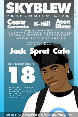 Indie artists in RDU continue to grow their buzz and fan base by linking up to put on yet another show. Catch SkyBlew, K. Hill, Azon Blaze, Jones Andrews and more this coming weekend at Jack Sprat in Chapel Hill.