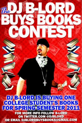 The winner gets up to $600 cash personally from DJ B-Lord to pay for his/her books for the Spring 2011 semester. DJ B-lord will accompany the winner to the bookstore and pay for the books in cash money baaaaaby!