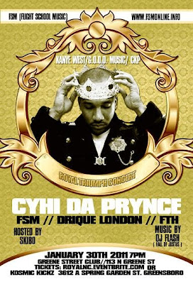 G.O.O.D. Music’s CyHi Da Prynce along with NC’s Flight School Music, Drique London, FTH plus more artists to be announced will be in concert Sunday January 30, 2011 at Greene Street in Greensboro, NC. This is sure to be a dope show and not to be missed.
