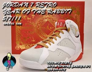 Air Jordan VII Retro Year Of The Rabbit Sneakers available next Saturday May 7, 2011. For this special sneaker release, the store will open at 8AM that day.
