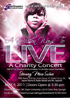 Next Monday May 9, 2011 Blkk Titan Entertainment will be hosting the A MillionWays To Live charity concert for breast cancer awareness at The Stewart Theater on NC State’s campus.