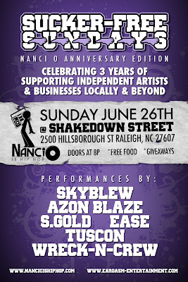 SkyBlew (Durham), Azon Blaze (Durham), S. Gold (Raleigh), Ease (Chapel Hill), Wreck-N-Crew (Durham) and Tucson (Raleigh).