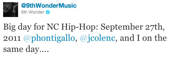 Now some of y’all can’t sit there and act like this doesn’t mean anything, but if all projects drop like they’re supposed to and none are pushed back, 9/27/2011 will go down in North Carolina Hip Hop history.